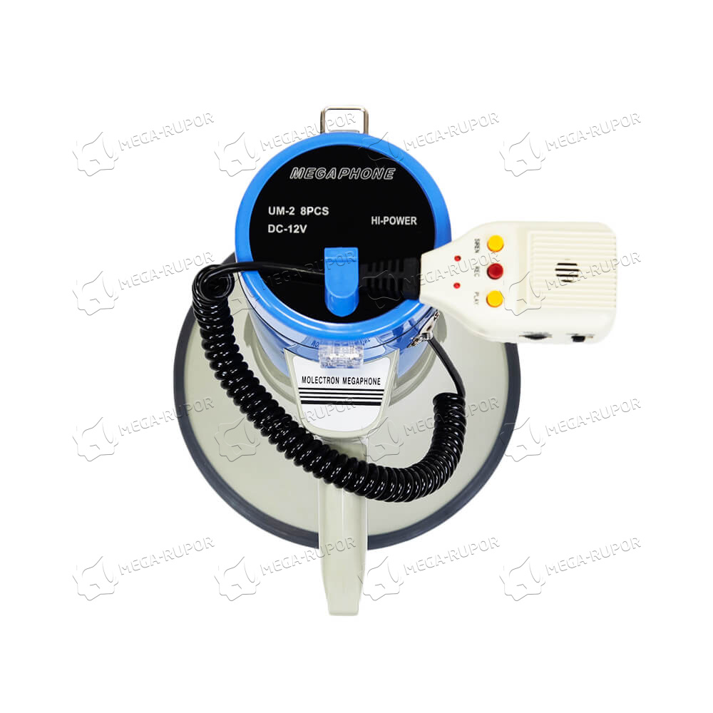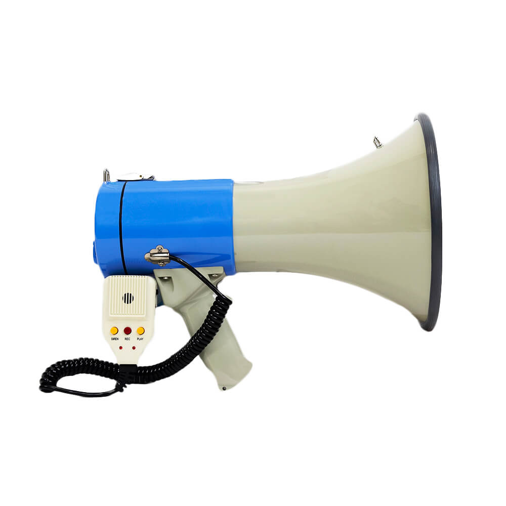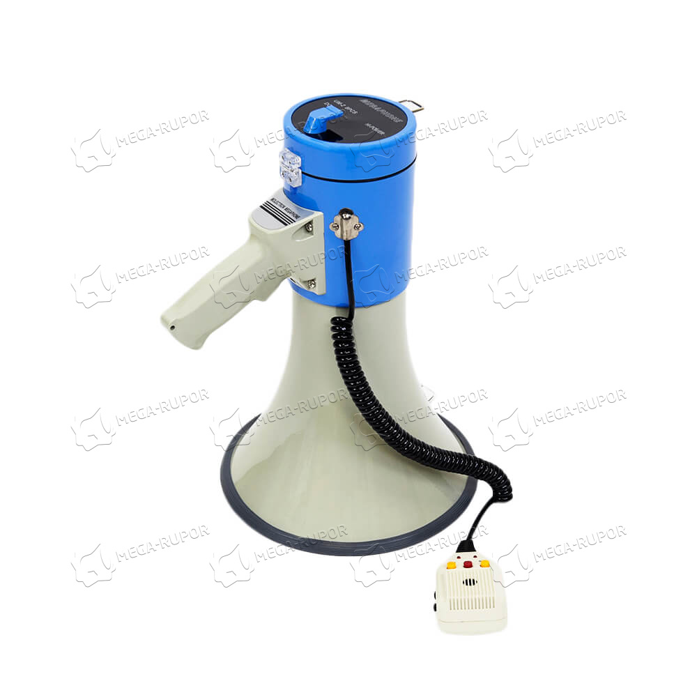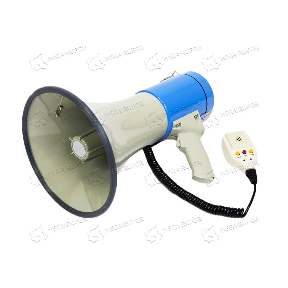 Рупор-громкоговоритель ABS Megaphone используется для массового оповещения людей. Работает на расстоянии до 800 метров. Мощность в 50 Вт позволяет использовать рупор на крупных открытых и закрытых площадках. Прибор выполнен из прочного АБС пластика, оснащен удобной эргономичной рукояткой и выносным микрофоном. Кнопки на корпусе дают возможность регулировать громкость речи. Питается устройство от встроенного аккумулятора, время автономной работы может достигать 6-8 часов. Так же есть функция записи по кнопке REC.